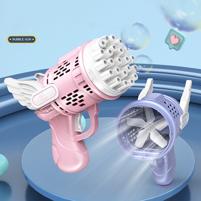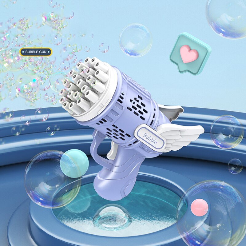 23 Holes Angel Bubble Gun Rocket Bubbles Machine Gun Shape Automatic Blower with Bubble Liquid Toy for Kid Bubble Machine Gift