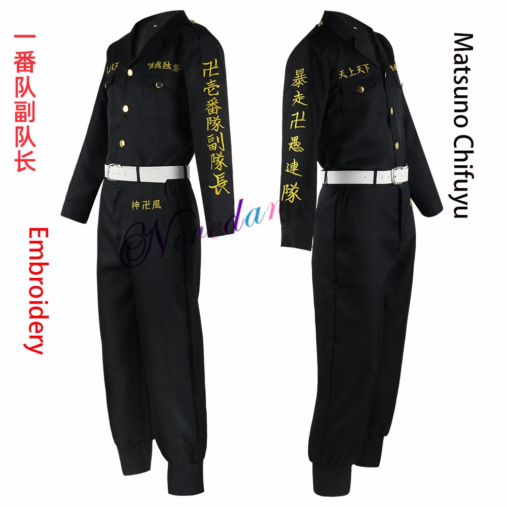 Anime Tokyo Revengers Keisuke Baji Chifuyu Matsuno Smiley Ken Tokyo Manji Gang Cosplay Costume Black Embroidery Jacket Uniform