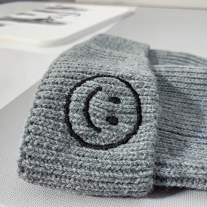 Baby Hat Solid Color Boy Girl Cartoon Smile Embroidery Winter Kids Knitted Hats Children Warm Beanies Child Caps For Babies