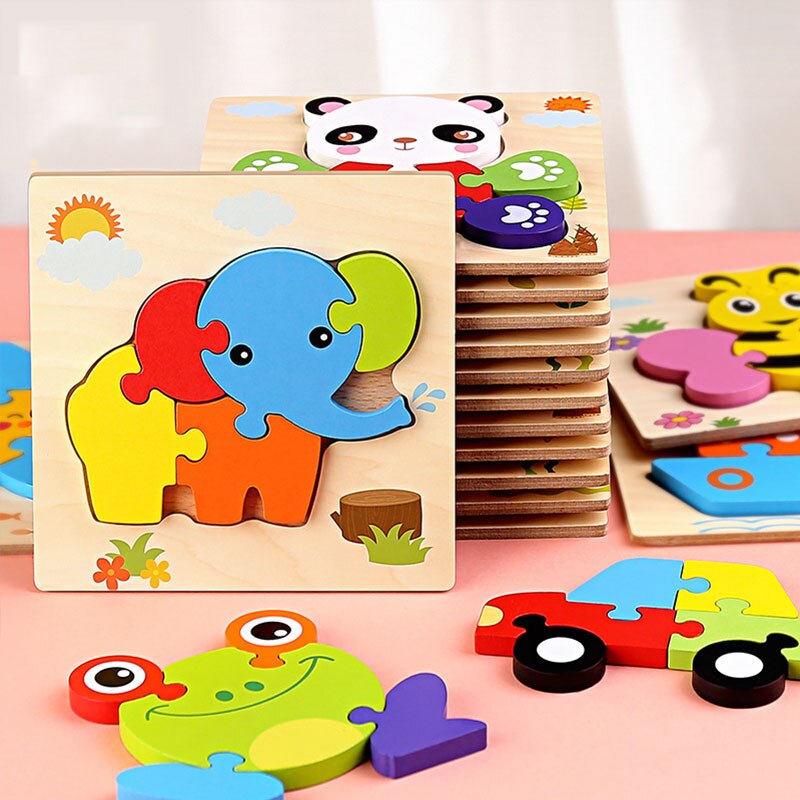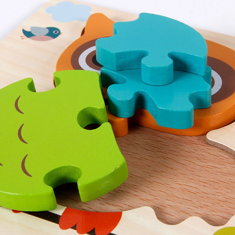 Baby Wooden Montessori Puzzle Child Game Wooden Puzzle 3D Cartoon Animal Puzzle Babies Toys Puzzles For Kids 1 2 3 Year Old