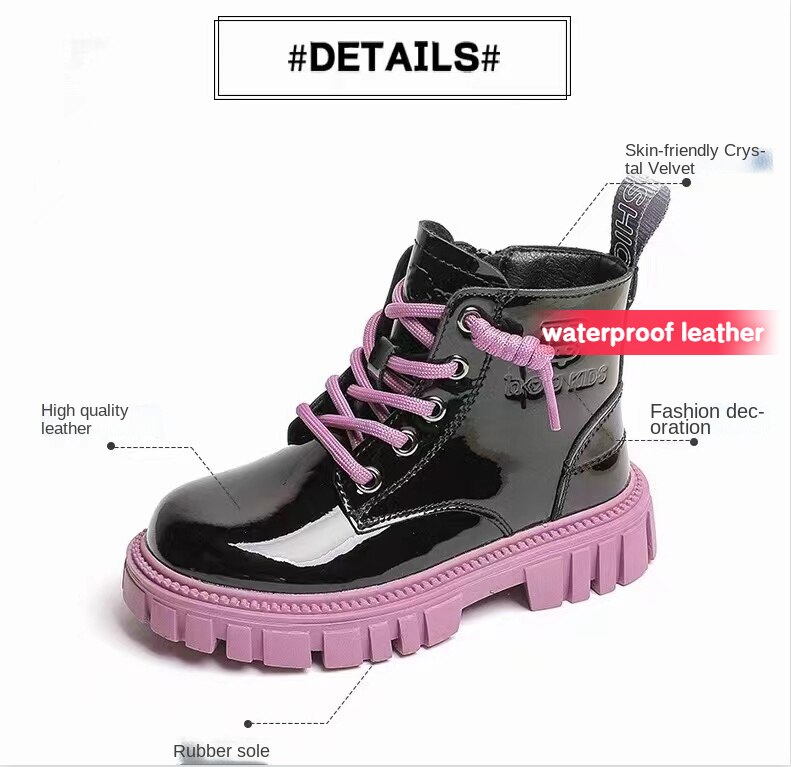 Fashion Kids Boots for Girls British Style Child Toddler Girl Combat Boots Warm Waterproof Boys High Boots 1-15 Years Old