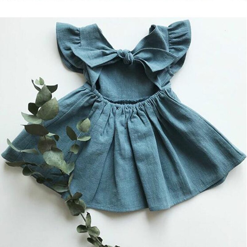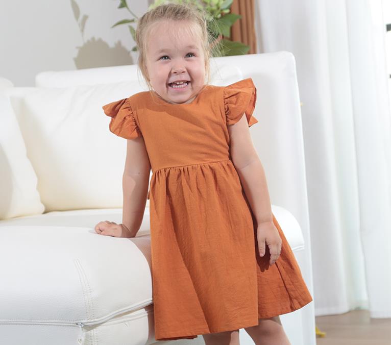 Korean Style Summer Infant Girls Dress Flying sleeve Cotton Linen Newborn Baby Girls Princess Dress Kids Party Dresses