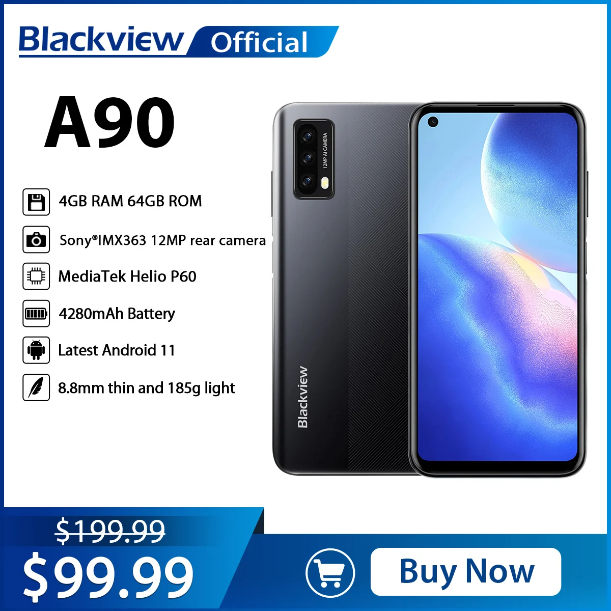 Blackview A90 Smartphone Helio P60 Octa Core 12MP HDR Camera Mobile Phone 4GB+64GB 4280mAh Android 11 Telephone 4G LTE Celular